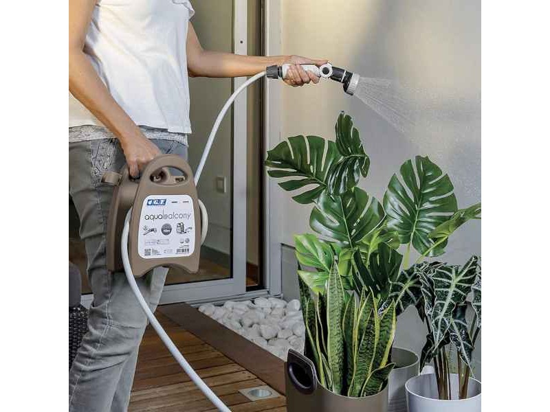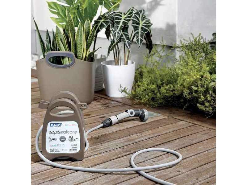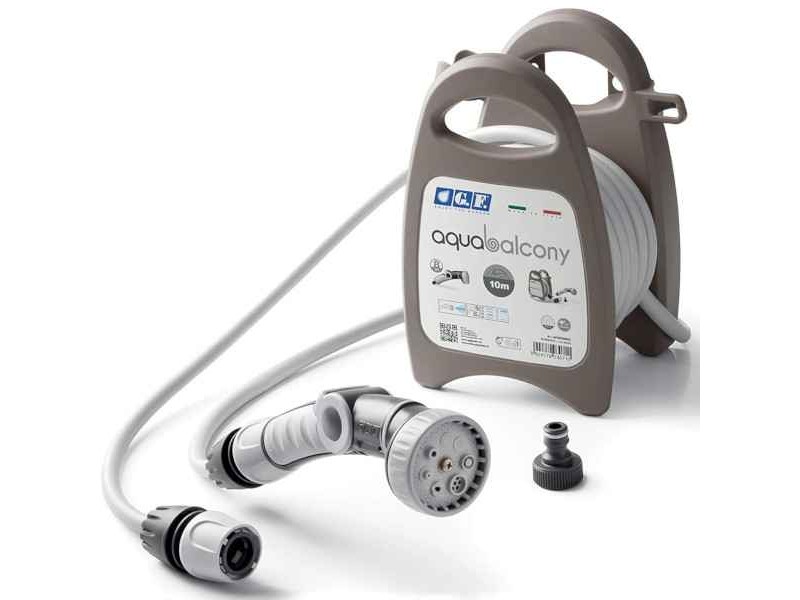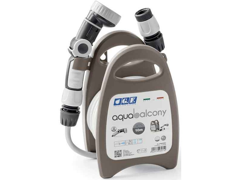The Aqua Balcony Garden Hose Reel Kit is a product of the leading company and in watering and irrigation accessories G.F. The portable hose reel is lightweight, pre-assembled and ready to use. The winding and unwinding of the watering hose is comfortable and its lifespan is long. The portable hose is extremely functional as it allows the watering of plants and flowers in the garden, on the terrace or on the balcony, both transported and resting on the ground or on the floor. The Aqua Balcony Garden Hose Reel Kit has 2 Soft Touch connectors, an ergonomic jet with adjustable flow of 8 different types, as well as a 3/4 " adaptor, suitable for connection to any type of tap, even indoor (kitchen, bathroom, washing machine). The Aqua Balcony Garden Hose Reel Kit can be used, in addition to gardens, in campsites, trailers and boats for washing or soaking.