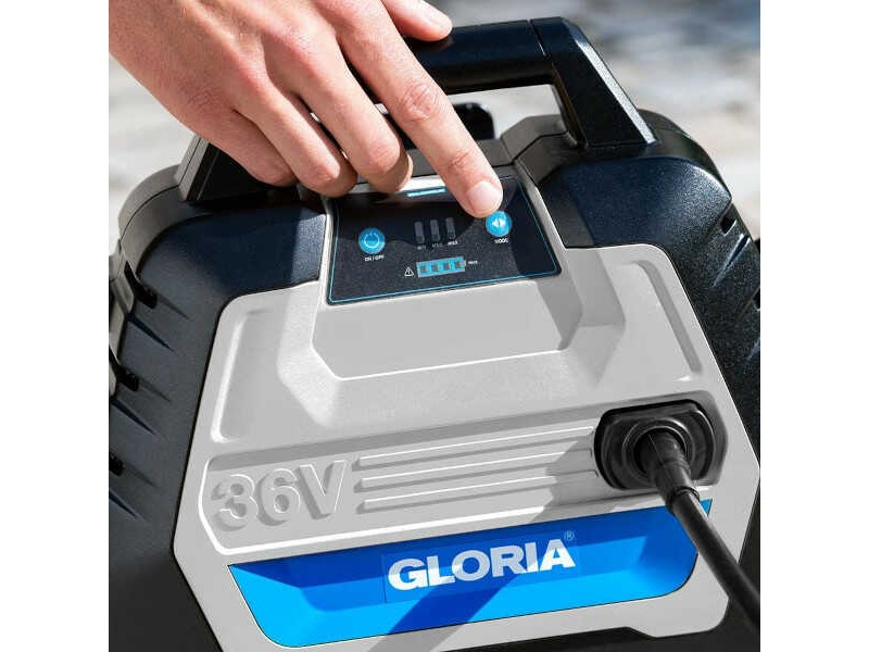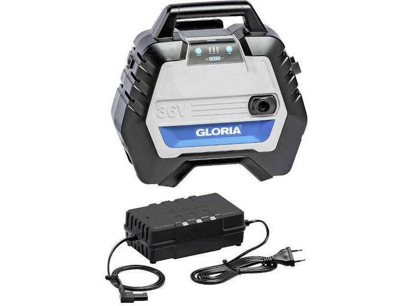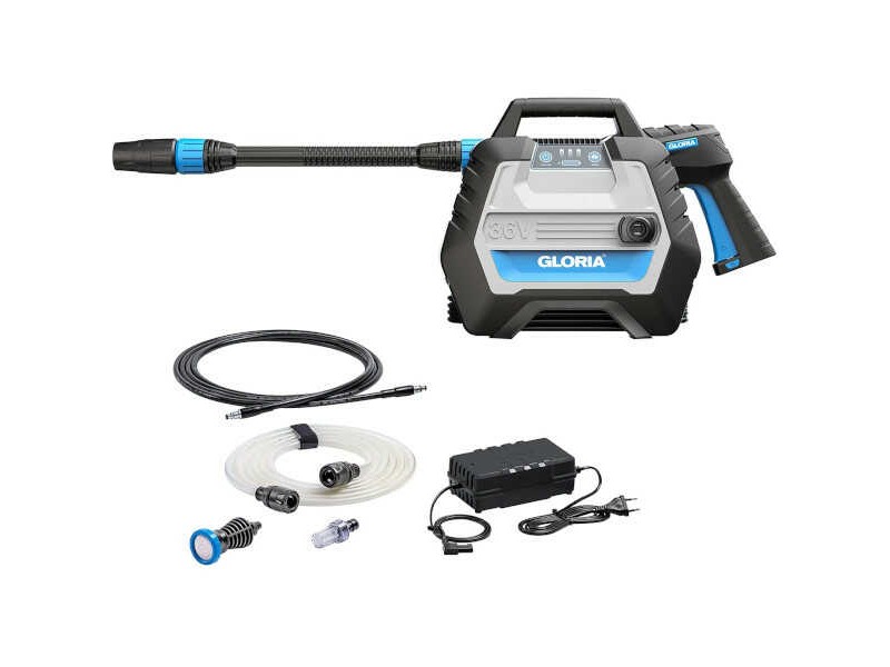 GLORIA MultiJet Multifunctional 36V Battery-Operated Pressure Washer G000320.0000 - Battery Washers. The GLORIA MultiJet 36V washers are manufactured by the leading German company GLORIA, which specializes in the production of household and professional tools and machines. The Multijet 36V is a portable washing machine with high performance and multiple features. Having a nozzle with 4 different settings, in addition to being an effective cleaning device, with the appropriate extensions it can be converted into a foam sprayer or a cleaning brush or a spraying device for applying crop protection products. It is compatible with every Bosch 36V battery and cleans gently and powerfully thanks to the adjustable operating pressure. The operating pressure can be adjusted in three stages (spray, eco, clean). The device can draw water or any suitable liquid from any source (tap, bucket, lake). Quite light and portable as it's easy to carry, no power cord required and ready to use anytime, anywhere - in the garden, camping, on a boat, on a journey. The GLORIA MultiJet 36V Battery Washer is supplied with the cleaning gun, the 75 cm extension lance, the built-in Li-ion battery 36 V / 4.0 Ah and the charger.