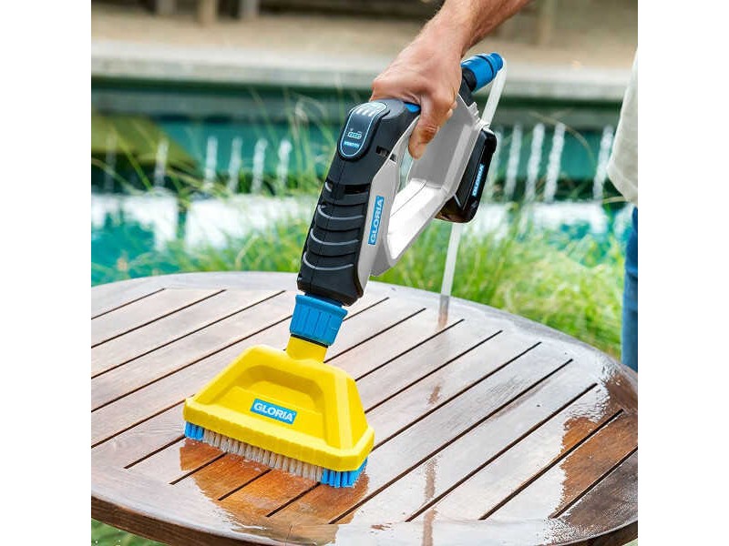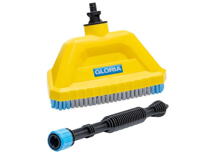 GLORIA MultiJet Brush Set for All MultiJet Washer G729122.0000 - Battery Washer Accessories. The brushes for all MultiJet washers are manufactured by the leading German company GLORIA, which specializes in the production of household and professional tools and machines. The GLORIA MultiJet Brush combines 2 in 1 functions since it has the ability cleaning and care of surfaces. Sweeping is done by the high-quality nylon bristles and washing by the nozzle on the brush head, which pours water and detergent. The brush can be used with either the extension lance or can be attached directly to any device in the MultiJet series for close range work. The GLORIA MultiJet Brush is 18 cm wide and is offered as a set with the extension lance, 40 cm long.