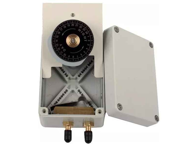 GUARDIAN 2 Timer for 24-hour Adjustment by Gepaval. The Gepaval Guardian 2 timer offers the ideal solution for programming the operation of the Guardian 2 cannon, allowing it to start and stop automatically at the desired time, according to the needs of each farmer and user. The timer is used to accurately set the hours during which the cannon will operate, for example, so that it automatically turns off at night if the crop is located near a residential area and there is a risk of disturbance. At the same time, we can program its nighttime operation in cases where crop pests—such as wild boars or other nocturnal animals—attack at night, or to operate during the day when the danger comes from birds or other animals that appear in the light. The timer is completely waterproof and runs on a battery included in the package, ensuring minimal consumption and long-term use without maintenance. It allows automatic activation and deactivation every 24 hours, with an operating time of 10 to 19 hours daily, making it extremely efficient for use over many months. It can be combined with the ability to adjust the firing frequency of the cannon (from 1 to 30 minutes) for complete control and performance in removing unwanted visitors from fields and other areas.