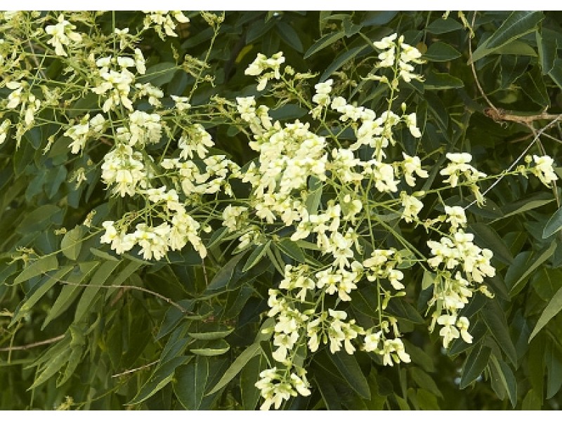 The Japanese Pagoda is a deciduous tree of medium height and rapid growth rate. It is used in parks, squares, hedgerows, and shading in the garden. It has a spherical shape, winged leaves that resemble the leaves of Robinia pseudoacacia and a straight, rounded, crumbly bark. The flowers are white - yellowish attached to botryoid inflorescences that attract insects. Japanese Pagoda (or Styphnolobium japonicum (L.) Schott) is a bee-keeping plant and, however, absolutely resistant to the stresses of the urban environment and also it is one of the most useful trees in gardening and landscaping.