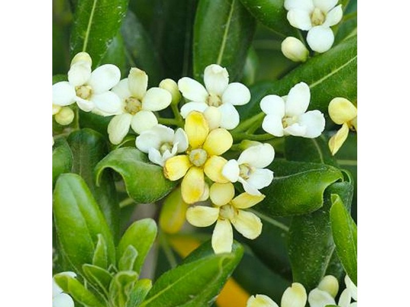 The Japanese Pittosporum is one of the most popular and widespread ornamental shrubs of the Mediterranean garden. Evergreen, with a nice dark green foliage and a white-yellow flower, the perfume of which fills the place, can be planted either alone in a pot or garden or in a row to create a natural aesthetic value hedge even on the balcony. It is extremely durable and adapts easily to a variety of environments.
