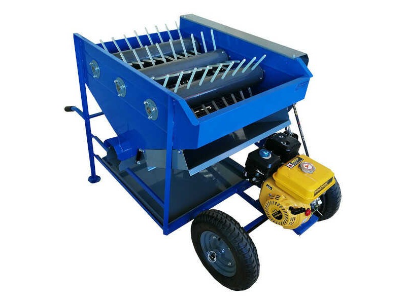 The Greek company KARKAVELLIAS produces the self-propelled wheeled Olive Harvesting Bench With 3 Cylinders Honda GP160. Using innovative technology, it simplifies the process of removing olives from the branches, offering substantial help to those involved in olive cultivation - professional olive growers and private individuals. The harvesting bench is equipped with horizontal cylinders fitted with silicone-coated durability sticks. The sticks rotate on their shaft, which is driven by the powerful gasoline engine Interpower 6.5HP. This mechanism allows the sticker to operate in a reliable manner and exhibits high durability and performance. The process of racking is easy and quick. Branches and twigs with olives already pruned from the tree are placed vertically on the cylinders of the bench. And as the cylinders rotate, the sticks shake the olives away from the branches. In addition, a practical feature of the olive harvester is the built-in slots for hanging the storage bag. When the bench separates the leaves from the branch, the leaves automatically fall into the bottom pan. At the same time, the olives are bagged in the hanging bag, offering convenience and a smoother workflow. The yield reaches 400-500 kg per hour (depending on the variety of olive). The Olive Harvesting Bench With 3 Cylinders Interpower 6.5HP and 2 wheel drive comes with a manufacturer's warranty and is backed by service and genuine spare parts. It carries the CE mark of the European Union and complies with all safe operation regulations.
