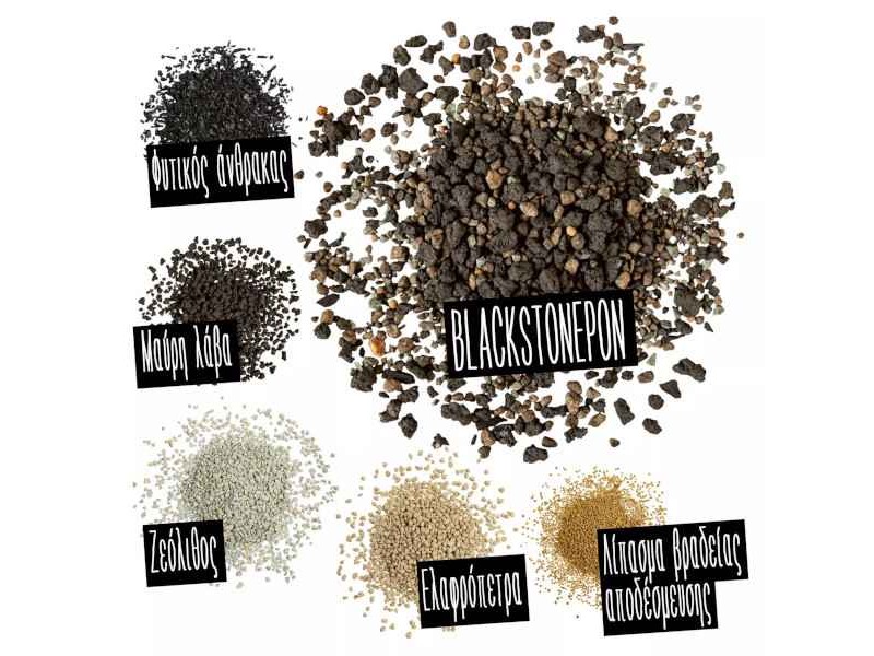Consists of pumice, lava, zeolite, black lava, vegetable carbon (biochar), slow-release fertiliser