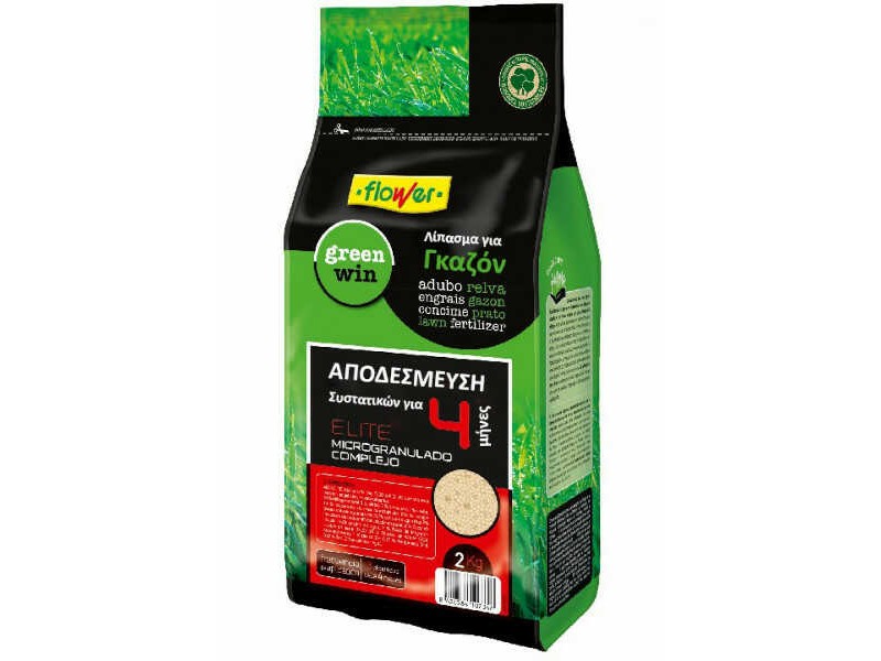 Lawn Fertilizer For 4 Months 2kg Supra ELITE - Slow-Release Fertilizers FLOWER. Special fertilizer suitable for feeding the lawn. Flower's Supra Elite Lawn Fertilizer is a special slow-release fertilizer that provides essential lawn nutrients for a period of 3 to 4 months. It is used both in spring and summer, until the beginning of autumn. With this fertilizer the grass grows better and more evenly. In addition, the progressive release of the fertilizer minimizes its loss during irrigation. In this way, the product is used more correctly, saving the budget but at the same time not burdening the environment. The small size of the microgranules (1-3mm) allows the fertilizer to be distributed evenly and therefore, its effect is the same throughout the lawn.
