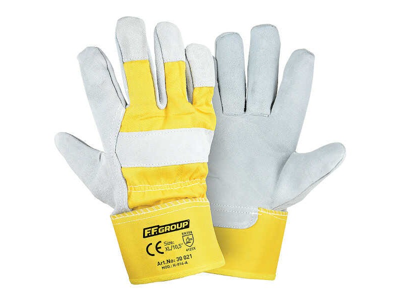Leather-cotton work gloves from split calf. They are double-glazed for longer life. The back of the glove & cuff is made of good quality cotton fabric. They are easy to wash and clean. Certified according to the EN388 standard. Size 10.5 available.