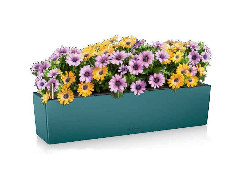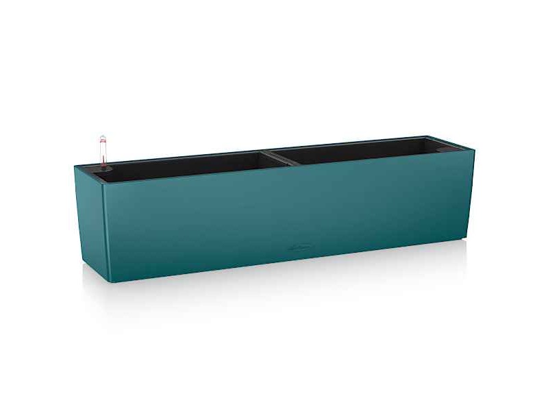BALCONERA Color 80 Petrol Blue 79x19x19cm LECHUZA Self-Watering Planter & Window Box & Cachepot. The Balconera Color 80 series are beautifully designed self-watering planters suitable for growing perennial or annual flowers and herbs. Their unique and elegant satin textured surface, which exudes a Mediterranean atmosphere while maintaining European finesse, makes them an excellent choice for planting a variety of flowers such as petunias, surfinias, geraniums, bluebells and broad-leaved plants, as well as aromatic herbs such as lavenders, rosemaries, basils and thymes. The Lechuza Balconera Color 80 Planter includes an interchangeable planter liner and a water level indicator that makes it easy to check to maintain the correct amount of water to be supplied to your plants. The automatic watering system is highly efficient and can keep them watered for up to four months, reducing the need for frequent watering. What's more, the planter is made from high quality material that is UV and frost resistant, ensuring durability and longevity. The Balconera Color 80 can be placed on balconies, terrace tables, hung on walls, fences and railings and is suitable for both horizontal and vertical surfaces. It is supported by special brackets for secure fixing to walls, fences or railings, as well as by brackets extensions for greater flexibility. It is available in eight colours, White, Slate (Dark Grey), Sand Brown, Nutmeg, Petrol Blue, Light Grey, Coral Red and Pastel Green. The Lechuza Balconera Color 80 Self-Watering Window Box & Cachepot is an excellent choice for those looking for a stylish and functional planter for growing flowers, herbs or other plants. It should be noted that the series won the first prize of the prestigious international Red Dot Awards for the year 2017.