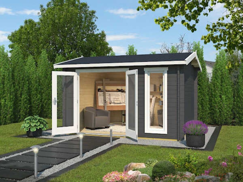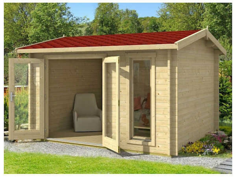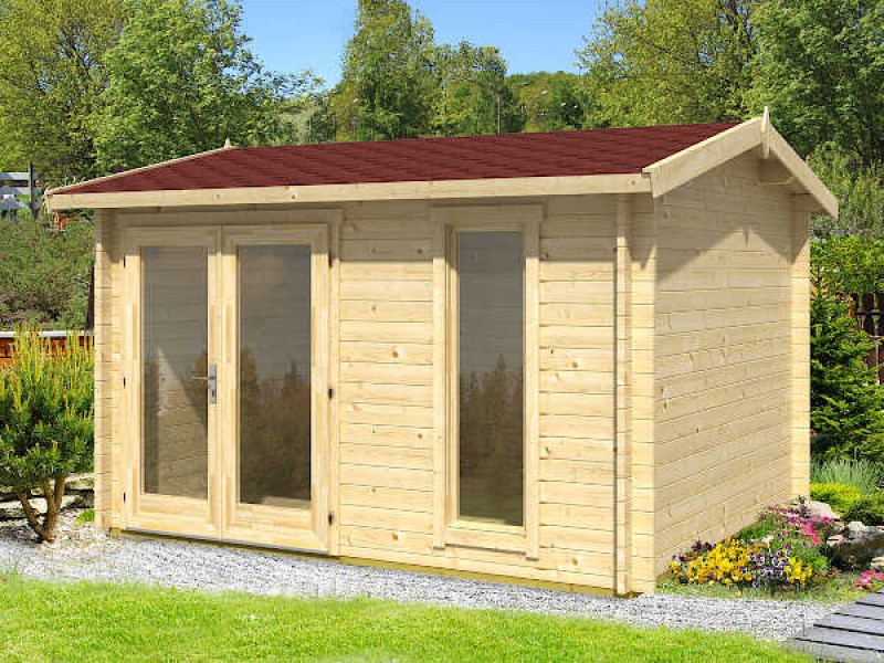 Log House FAIDRA 350 x 300cm. The Faidra log houses are the right size for integration and installation in any garden with similar free spaces. They are classic and elegant, and can be used for a variety of practical purposes. They have a pitched roof and are extremely bright, as they have two large window - doors on the front, which open outwards, and another large window, which starts almost from the floor and reaches the ceiling. The Log House FAIDRA has been created following the ISO-9001 standard, in order to ensure the top quality of the product, while it is made of selected, processed Scandinavian wood of excellent quality, equipped with FSC® certification of proper environmental logging. The FAIDRA house can be used as a studio, office or small guest house in the gardens and the countryside.