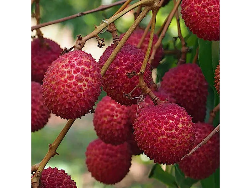The Lychee (Litchi chinensis) is a monotypic species which belongs botanically to the Soapberry (Sapindaceae) family. It is a large perennial, evergreen, woody, fruit-bearing tropical tree that can grow to a height of 15 to 23 m, but in Mediterranean countries it will rarely exceed 3 to 4 m. The Lychee prefers sunny places and has a high resistance to high temperatures (>40 °C) and low resistance to low temperatures, with a minimum resistance of -5 °C - although its young shoots are damaged even at -1 °C. It is grown in fertile, acidic to neutral soils (5-7, optimum: 5.5-6.5), with excellent drainage. Lychees bloom from late winter to early spring, with yellow, white or greenish monoecious flowers in a panicle inflorescence. Fruiting occurs spring to mid-summer, with red spherical or ovoid drupe fruits. They have a sweet taste and are eaten fresh, dried, frozen or canned. In addition, their medicinal value is high.
