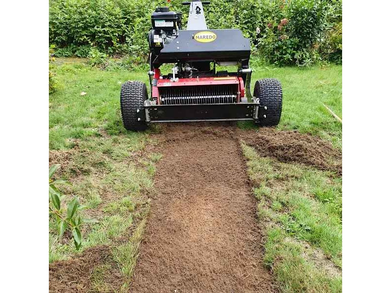 Maredo ST170 FlexFraze-Mower Head 66cm Turf Stripping - Multipurpose Tool Carriers. The MAREDO ST170 FlexFraze-Mower is a unique tool that revolutionizes the lawn management process. Designed with innovative technology, this machine offers precise fraze-mowing or turf stripping, leaving behind only roots and a perfectly flat surface. With a working width of 66cm and a ground penetration capacity of up to 25mm, it is suitable for fraze-mowing of various areas where those parts of the turf show severe wear or poor growth. The stripping process carried out by the ST170 FlexFraze-Mower prepares the soil for overseeding or re-sodding. By removing old and damaged turf, the machine creates the perfect conditions for the growth of a new and healthy carpet of grass. Thus, gardeners, greenkeepers and landscape management professionals have an effective tool in their hands to transform problem areas into extremely healthy turf patches. The ease of use and compact design of the ST170 FlexFraze-Mower allows it to be used without the need for large, heavy machinery such as tractors. This makes it ideal for both private users looking to renew their garden and professionals looking for solutions for demanding tasks. The MAREDO ST170 FlexFraze-Mower is the right choice for those who want to provide professional turf care, saving time and effort. The ST170 FlexFraz head, weighing 70 kg, is mounted on the STrac 700-26 and STrac 720-26 tool carriers.