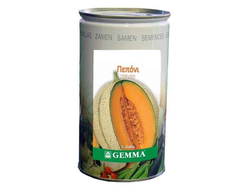 Melon Type Galia R3821C 0.5kg Canned Seeds (Cucumis melo 'Retato Degli Ortolani'). Annual plant. Semi-early variety. Fruit slightly oval & rind with reticulate texture. Flesh solid and aromatic, yellow/orange in color. Available in a 500g can.