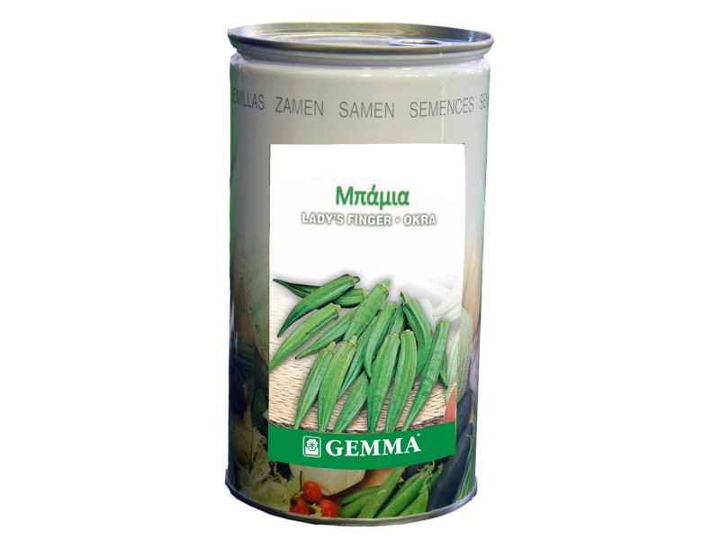 Okra R0305C 0.5kg Canned Seeds (Hibiscus escillentus). Annual plant. It is an upright branch, 80-100 cm tall with yellow flowers with dark brown in the center. The fruit, 10-15 cm long, is long, fleshy, containing the seeds and a mucilaginous substance inside. Available in a 500g can.