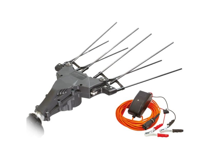 | Additional | 1) Model Type: MURCIELAGO, 2) Movement: Reciprocating in the same direction, 3) Sticks: 8 L30cm-Ø4.5mm, 4) Power Consumption: 3-4 Amper, 5) Pole Length: 2.10-3.4 meters (Telescopic), 6) Cable length: 15 meters with terminals, 7) Connection with a 12V battery preferably VRLA (AGM GEL), 8) Comes with a converter - stabilizer (ZDC) with light indicators of operation |