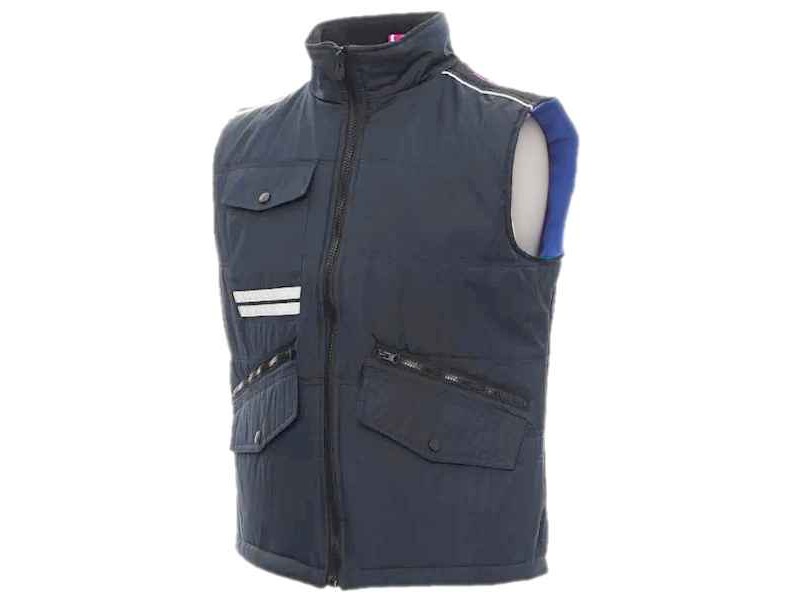 PAYPER Mig 2.0 Waterproof Winter Work Vest Unisex Blue-Blue Navy. PAYPER's windproof, waterproof Mig 2.0 work vest is the perfect choice for those looking for a practical and stylish solution for their winter working life. With its Blue-Blue Navy colour and Unisex design, the vest easily adapts to any style and need. It features an 8mm plastic zipper, which closes securely thanks to the metal slider, offering increased durability and reliability during use. For essential storage, the two lock system outer pockets offer convenient and secure access to essential items, while the slanted pockets make access even easier. The vest also includes a breast pocket dedicated to your smartphone, as well as a card holder ring, making your daily activities easier. Padded, contrasting fleece lining on the back and collar provide additional security, making it suitable for use in low-light conditions. As it has inner zip for easier printing and embroidery, it can be suitable for professional use. Composed of 100% polyester, the Mig 2.0 offers excellent quality for the price and is available in a wide range of sizes from S to 5XL, catering for all needs. With this vest, you combine work with comfort and safety in style.