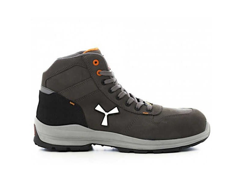 Payper GET FORCE MID S3 ESD SRC Smoke Safety Ankle Boots. Low safety shoe for men, upper in water-repellent and breathable leather, inner lining (for the entire inner surface) breathable and abrasion resistant, 8+8 metalfree eyelets, pampas grain guard with reflective insert, die-cast aluminum toe, removable footbed Ortholite X40 016 ESD, insole in textile foil certified anti-perforation, anti-torsion truck, horseshoe underuntal, ultralight polyurethane midsole ESD, MA-shock absorber STER BALANCE in PU polyether with high tenacity and balanced density, XTRAIL GRIP sole in TPU ESD with guard and parapunt.
