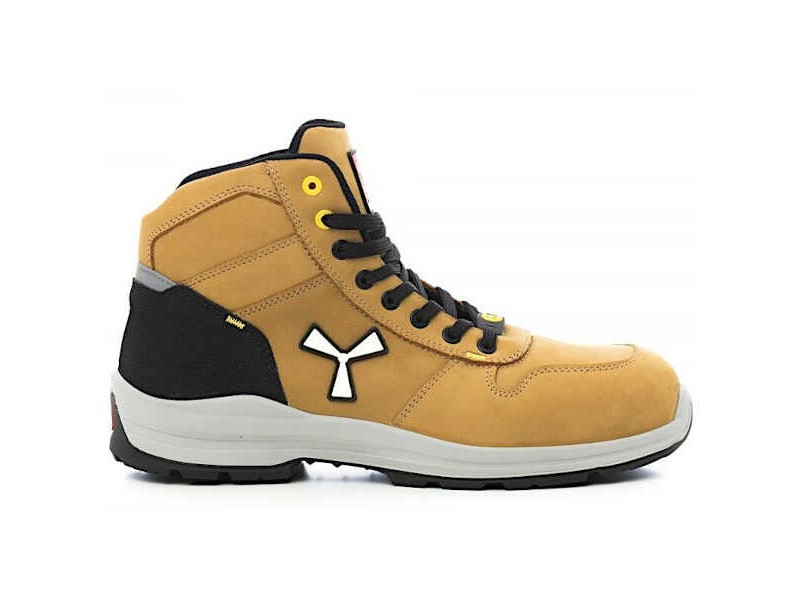 Payper GET FORCE MID S3 ESD SRC Yellow Safety Ankle Boots. Low safety shoe for men, upper in water-repellent and breathable leather, inner lining (for the entire inner surface) breathable and abrasion resistant, 8+8 metalfree eyelets, pampas grain guard with reflective insert, die-cast aluminum toe, removable footbed Ortholite X40 016 ESD, insole in textile foil certified anti-perforation, anti-torsion truck, horseshoe underuntal, ultralight polyurethane midsole ESD, MA-shock absorber STER BALANCE in PU polyether with high tenacity and balanced density, XTRAIL GRIP sole in TPU ESD with guard and parapunt.