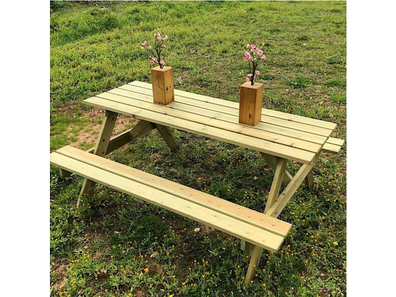 Wooden Outdoor Garden Picnic Table Irida 180x144cm. The countryside bench is made of wood, which is the product of organized logging of Scandinavian forests to promote sustainability. The country picnic tables are suitable for picnics for up to 6 - 8 people. They are distinguished for their flexibility as they fit, despite their identification as holiday homes, in a number of different environments, even urban, based solely on their suitable decorative integration. They can be installed in parks, cottages or townhouses, as well as in outdoor business dining areas. The Wooden Outdoor Garden Picnic Table Irida has an extremely long-term resistance to the current environmental conditions and the usual stresses from use. With minimal maintenance, in fact, its durability over time increases even more.