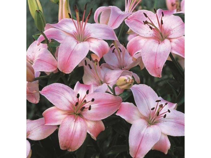 Monochrome bulbs of Asiatic Lily with pink color of fragrant flower. The Asiatic Lilies are perennial bulbous plants of spring planting whose height can reach 0.60 to 0.90 m with the flower. Lilies bloom in summer, with flowers of different sizes and impressive colors. The Asiatic Lily bulbs can be planted in the garden or in a pot and planter. Planting in pots and planters requires a high quality soil mixture, as well as pumice or other similar material, in the area of the flowerpot bottom, to facilitate drainage, which in the case of bulbous plants should be excellent. The Pink Asiatic Lily is useful to stake in order to have an attractive appearance throughout the whole flowering period.