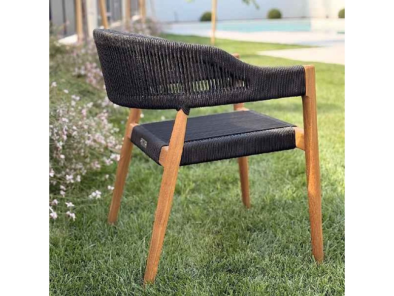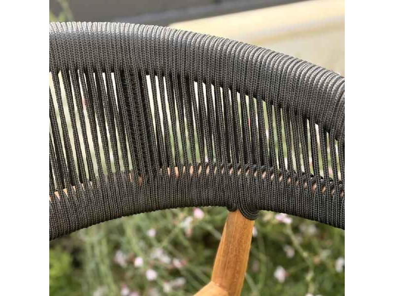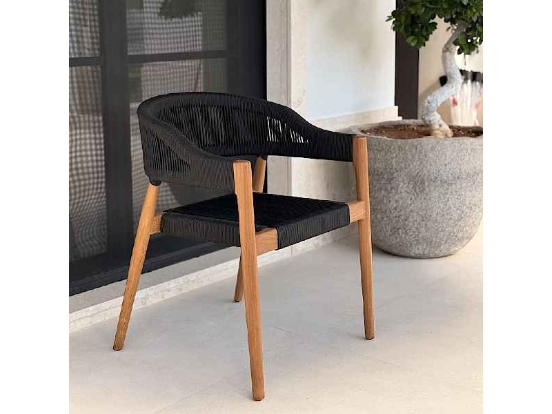 The premium outdoor chair made of natural teak with synthetic black ropes is a top-tier choice for those seeking high aesthetics, comfort, and long-lasting durability for modern outdoor environments. Measuring 77x60x60 cm, this handcrafted chair blends traditional woodworking techniques with contemporary design, offering an ergonomically designed seat that enhances any terrace, garden, or professional hospitality project. The first-grade, responsibly sourced teak provides excellent stability and exceptional resistance to outdoor conditions, while the black synthetic ropes ensure comfort and a modern look without requiring maintenance. Over time, the teak naturally develops an elegant silver-gray patina that does not affect its structural integrity, allowing the furniture to remain durable and fully functional for many years. In addition, all metal components are made of 304-grade stainless steel, enhancing corrosion protection and ensuring maximum long-term reliability. The chair requires no assembly, making it ready for immediate use, and its thoughtful ergonomic design offers comfortable seating for both residential and commercial outdoor spaces. Combining natural teak, premium materials, and contemporary aesthetics, this chair is an ideal solution for anyone seeking a durable, stylish, and practical outdoor furniture piece that preserves its value and appearance over time.