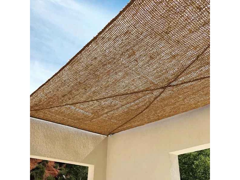 Sail design with a vertically reinforced weave pattern. Square or rectangular coconut shade net for hanging, with a fixing point at each corner and tying at 1 metre intervals.