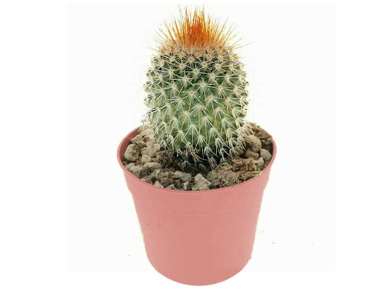 Red Headed Irishman rubrispina (Mammillaria spinosissima f. rubrispina) Plant - Cactuses & Succulents. Extremely popular, ornamental perennial cactus plant of small size with an erect form. The rubrispina form has a rapid growth rate, it is usually a solitary cactus although it sometimes shows many lateral stems from the base, whose colour is bright green. The cylindrical-shaped stems show grooves due to small conical tubercles - tubercles arranged in spirals. A few soft, white hairs grow in the area (axil) around the bases of the tubercles. At the top of the tubercles are the areoles, from which 20 to 25 short, white-coloured spines, more like hairs, grow radially. The 12 to 15 straight central spines are copper-red, stronger than the radial ones and thicker at the base, being 10 to 12 mm long. The central spines are largely responsible for the popularity of the plant, as they completely occupy the top of the stem, giving it an attractive reddish colour. Of course, the flowers also contribute to making Red Headed Irishman rubrispina a sought-after plant. The flowers are mauve-purple in colour and form an impressive ring just below the top of the stems. They grow from the areoles and appear from late winter to late spring. The flowers are succeeded by purple-red fruits, containing many brownish seeds. Red Headed Irishman rubrispina (Mammillaria spinosissima f. rubrispina) is a hardy xerophyte plant suitable for potting, gravel or stony garden soil or rock gardens. It is used in both gardening and landscape architecture to create - among other things - dry landscape compositions (xeriscaping).