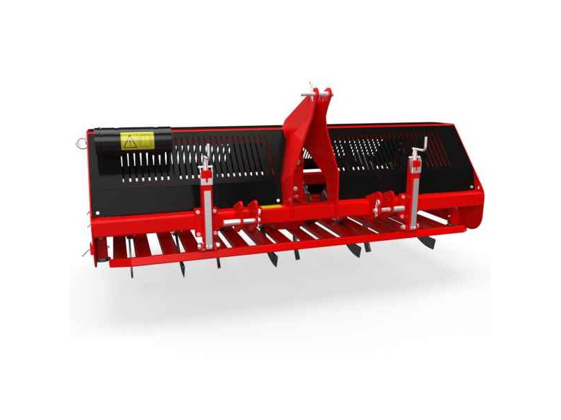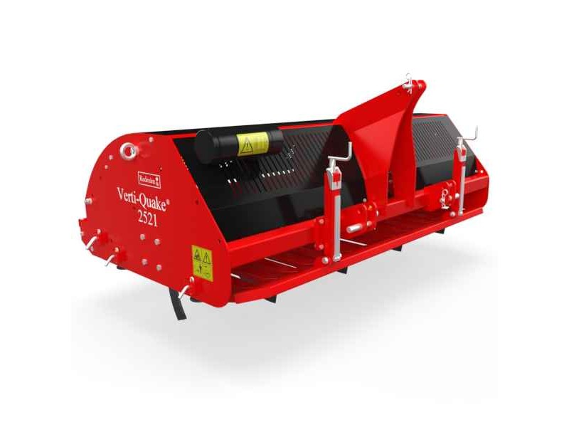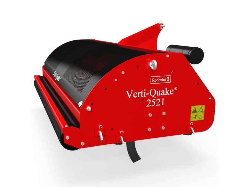 Redexim VERTI-QUAKE 2521 Aerator 2.1m-25cm Tractor Mounted - Tractors Attachment & Accessories, Aerators. The Redexim Verti-Quake® 2521 is a high-performance soil aerator designed for tractor mounting, offering deep and efficient soil decompaction with minimal surface disturbance. With a working width of 2.1 meters and a maximum depth of 25 cm, the Verti-Quake® 2521 uses a unique driven blade system that creates a wave motion through the soil. This innovative action effectively relieves compaction, improving the movement of air, water, and nutrients, and enhancing the overall health and vitality of turf surfaces. Ideal for sports fields, golf courses, parks, and large green areas, it is the perfect solution for professionals seeking durability, reliability, and top performance. Its robust design ensures long-lasting operation with minimal maintenance, while its adaptability makes it suitable for a wide range of soil types, including compacted or poor soils. The Verti-Quake® 2521 minimizes surface disruption while maximizing subsurface aeration efficiency, delivering a smooth, healthy, and resilient turf finish. Choose the Verti-Quake® 2521 for superior soil aeration performance and long-term results in any professional turf management application.