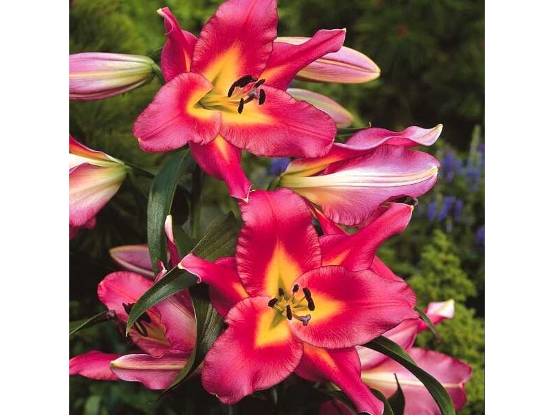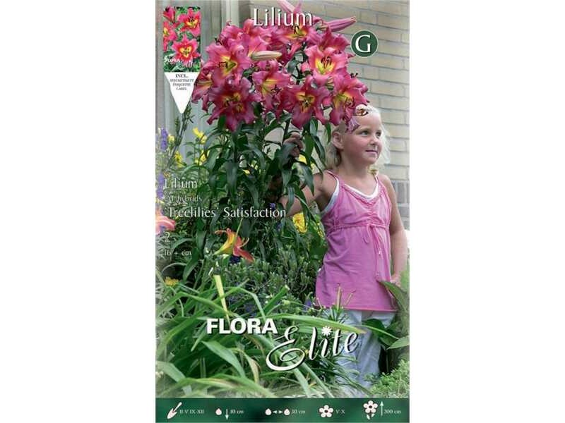 Satisfaction Lily: monochrome bulbs of Tree Lily with fuchsia color of fragrant flower. The Tree Lilies are perennial bulbous plants of spring planting whose height can reach 2.00 m with the flower. Lilies bloom in summer, with fragrants flowers of different sizes and impressive colors. The Tree Lily bulbs can be planted in the garden or in a pot and planter - but always in soil that is not alkaline. Planting in pots and planters requires a high quality soil mixture, as well as pumice or other similar material, in the area of the flowerpot bottom, to facilitate drainage, which in the case of bulbous plants should be excellent. The Satisfaction Lily is useful to stake in order to have an attractive appearance throughout the whole flowering period.