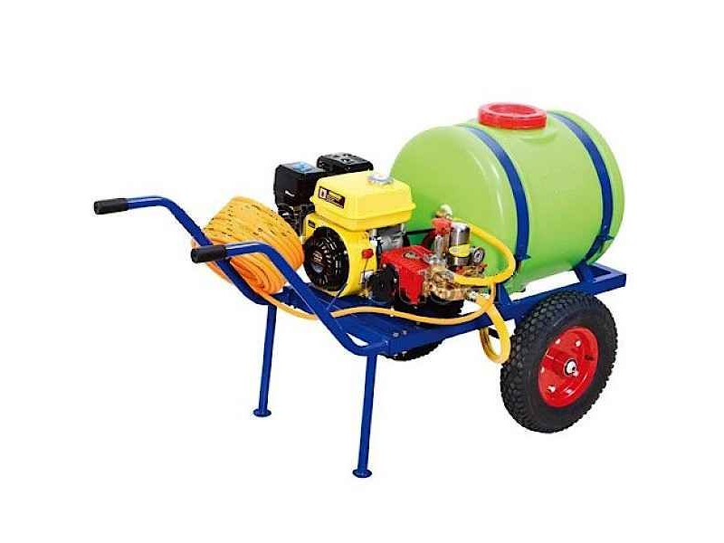 Sprayer unit for farmers and professional gardeners equipped with a 80 lt tank. It has the powerful 6.5 hp Interpower OHV four-stroke gasoline engine, a piston three-piston pump with two outlets of 2 water supplies, and drive transmission with 2 straps. The engine is equipped with a metal recoil, On-Off safety switch and oil level control. The unit is fitted with two front inflatable wheels, which offer quite comfortable movement in the orchard, on the farm, on the field, on the farm, in the small or large garden, as well as easy storage. Its low maintenance and durable construction make it suitable for all those who wish to enjoy an impeccably maintained garden or estate, with reliable sprayers.