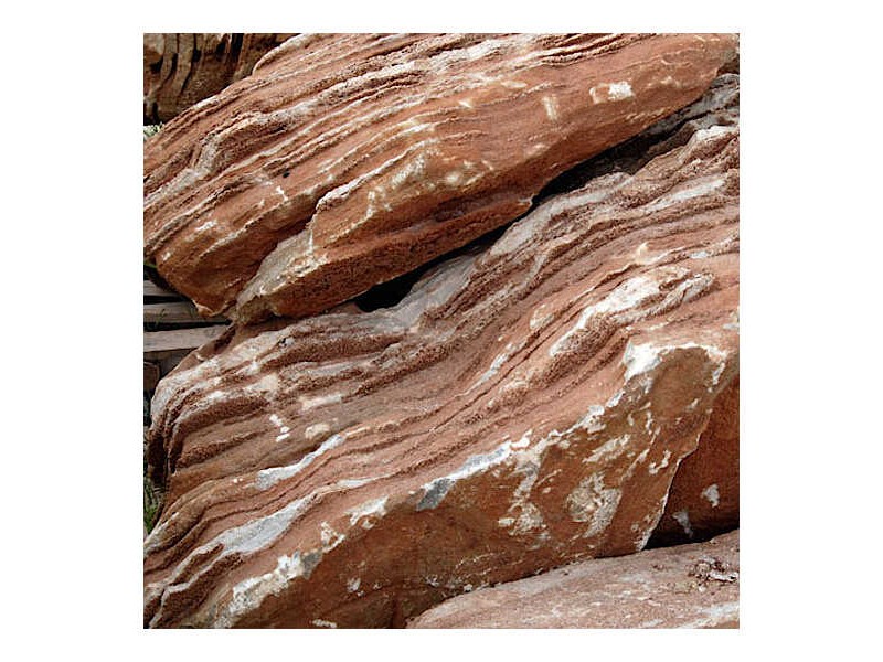 Rock Garden Stone Meteoric 1t - Natural. The natural Rock Garden Stone Meteoric is characterized by the element of movement due to the fact that it seems to consist of "slices" of the parent rock, which appear as lines or "rings" on the medium textured surface. The Rock Garden Stone Meteoric has a light brown and grayish orange color, mixed with white spots. It has an excellent appearance, and despite its irregular shape, it has its upper and lower sides relatively flat and parallel. And this element, as in the White Sandblasted Stone, extends the possibilities of its utilization, making it suitable for the creation of walls and / or for the retention of teraces in the garden and in the landscape. Of course, it is even used in the construction of rock gardens and rock formations, as well as in the decoration of flower beds.
