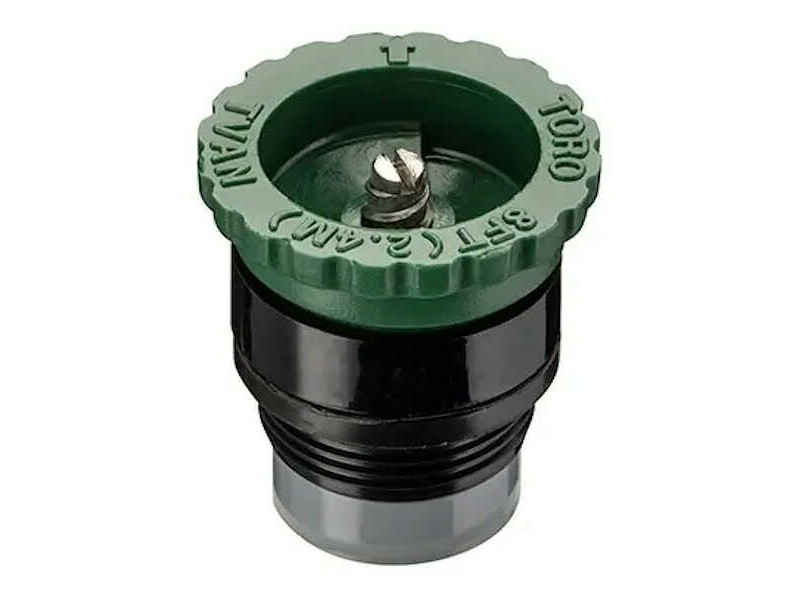 Toro Adjustable Arc Nozzle 2.4m Green (TVAN) | 0 - 360˚ Adjustable Arc. The TVAN Toro Adjustable Arc Nozzles are designed to make the installation of an automatic irrigation system easy and efficient. With a wetting radius of 2.4 to 5.2 m and easily adjustable - even under pressure - by hand, they help ensure that the full coverage of the individual irrigation requirements of each individual garden is ensured. With the ability to adjust the wetting arc from 0 to 360˚, the Green Adjustable Arc Nozzle 2.4m TORO can be adjusted in an extremely flexible way, finally bringing the irrigation coverage of almost any corresponding requirements of garden and landscape irrigation area.