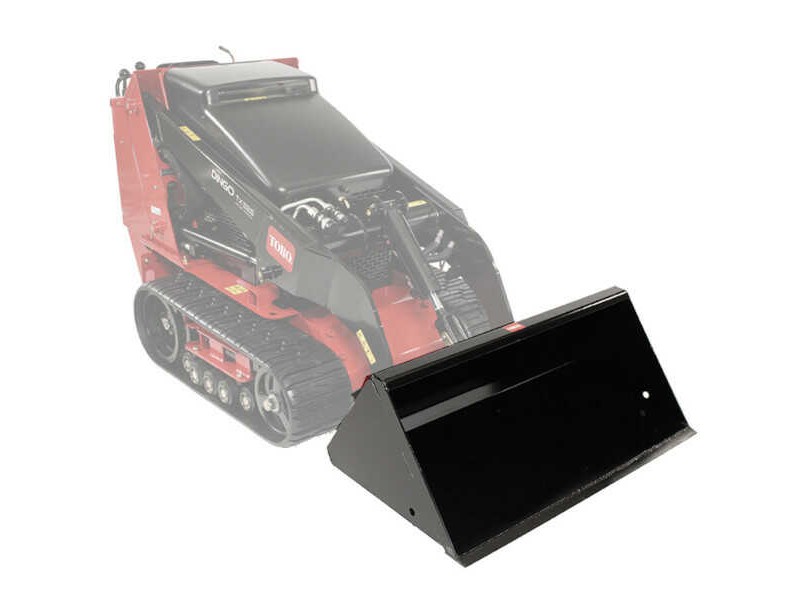 Toro DINGO Loader Bucket 125lt Attachment - Compact Utility Loaders-Loader Buckets. The Toro Bucket, which is manufactured entirely in the USA, is a robust and durable attachment, suitable for use with the DINGO series of compact utility loaders. Utilized for moving rocks, soil, sand or other materials in, out and around the jobsite or work area. Its cutting edge is made of hardened steel so that it can provide optimum cutting and excavation capacity with high efficiency and wear resistance. The capacity of the Bucket is up to 125 litres.