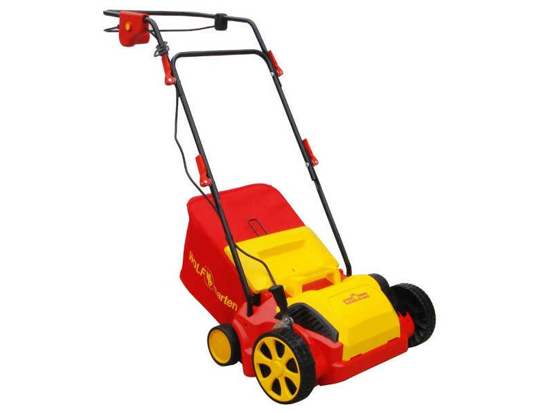 VS 302 E Electric Lawn Scarifier WOLF-Garten - Electric Scarifiers. The WOLF-Garten VS 302 E lawn scarifier is easy to handle and extremely versatile. Powered by a reliable 1200 W motor, the VS 302 E has a working width of 30 cm. The scarifying tines be centrally adjustable between five separate working heights for greater efficiency under different working conditions. Lightweight, weighing just 12 kg, the VS 302 E has a high-quality plastic chassis and a 35 liter collector bag. With WOLF-Garten's patented Flick-Flack® cable guide, the power cord is guided and protected against pulling load so there is no need to carry the cable by hand and, while scarifying, it is laid beside the scarifier to prevent running over it. The VS 302 E Electric Lawn Scarifier is easily transported and stored saving space thanks to its folding handlebar. The scarifier is supported by a full range of genuine spare parts.