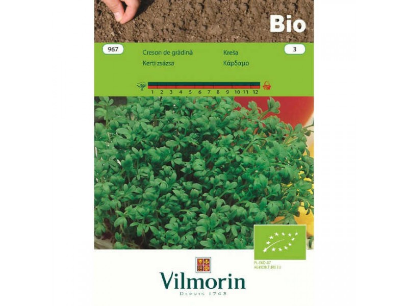 The Garden Cress (Lepidium sativum) is an annual plant of easy cultivation. It comes from the tropical regions of Asia and botanically belongs to the Brassicaceae family. It is used in cooking for its spicy, slightly burning taste, leaves and shoots. It is a rich source of vitamins (A, C and K), minerals and sugars. The organically produced Lepidium sativum comes from the renowned French seed company VILMORIN (founded in 1743), which guarantees the biological origin of the seed, germination and fidelity to the type of product.