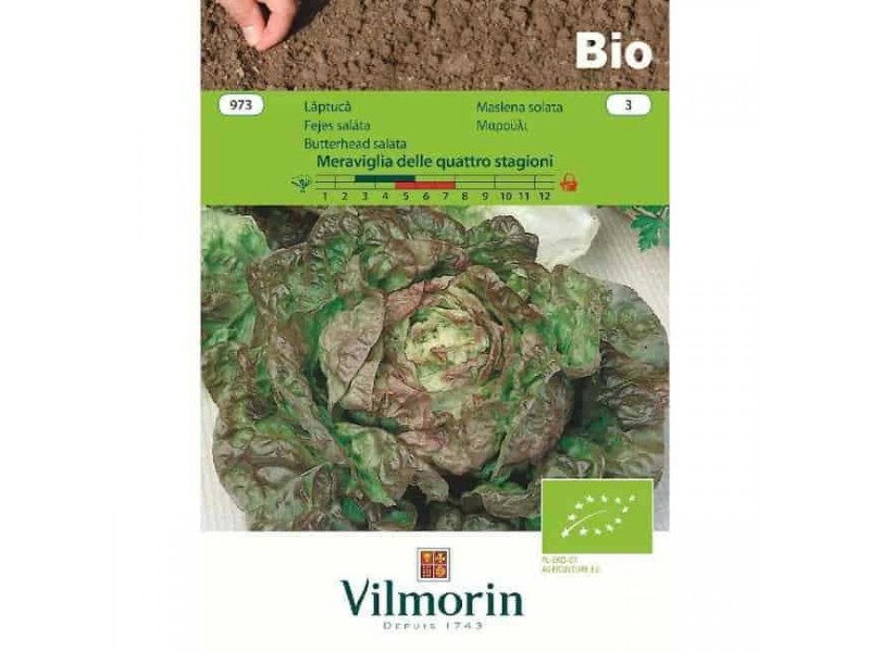 The Lettuce (Lactuca sativa) is an annual plant which botanically belongs to the family of Asteraceae or Composita. The Meraviglia Delle Quattro Stagioni variety translated as "Four Seasons Wonder" and is included among the traditional ones of its species. It is productive and resistant to foliage diseases. Forms medium-sized firm heads with reddish-brown, fairly tender leaves. The organically produced Lettuce Bio Meraviglia Delle Quattro Stagioni comes from the renowned French seed company VILMORIN (founded in 1743), which guarantees the organic origin of the seed, germination and fidelity to the variety of the product.