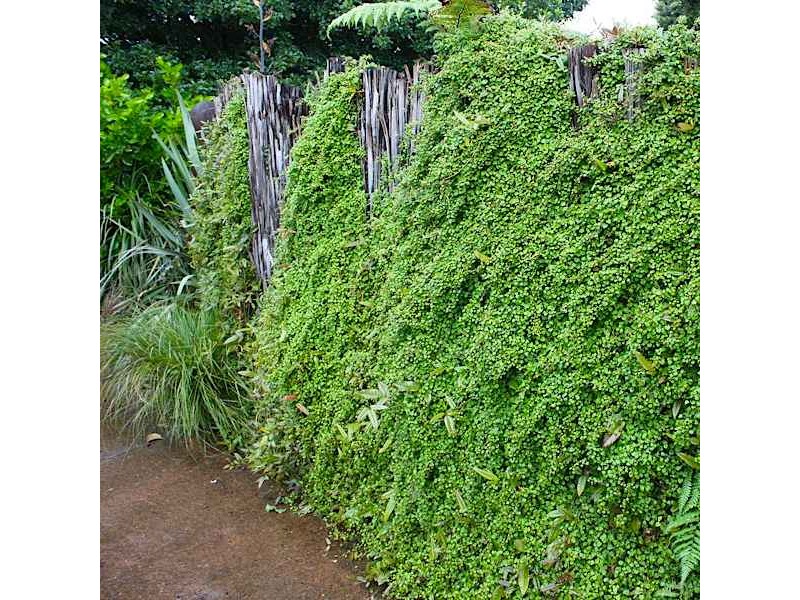 Wire Vine (Muehlenbeckia complexa) Climbing Plant - Vine Flowering Plants. The Wire Vine belongs botanically to the family of Buckwheats (Polygonaceae). It is native to several regions of New Zealand. It is a sturdy, medium-sized climbing (or creeping) plant, which, thanks to its twining stems, can reach a height of about 10 m, supported on trees or surfaces. Otherwise, and if it is not supported, it will spread or climb on its own and reach a height of up to 30 cm. The Muehlenbeckia complexa is perennial and semi-evergreen, with a fast growth rate, high-density crown and a spreading habit. The leaves are alternate, simple, smooth-textured, ellirtic in shape with entire margins, whose lamina is green in colour. The dioecious flowers, borne on raceme inflorescences, are white and greenish-yellow in colour, stellate in shape and appear from late summer to mid-autumn. The Wire Vine is an easy-to-grow plant, has no serious pest and disease problems and has minimal maintenance requirements. It is utilized as an ornamental climber to create a hedgee, as well as on pergolas or trellises. It is also planted as specimen, or in group plantings and compositions. Its high resistance to salt sprays additionally allows it to be planted in seaside gardens. It is also an excellent ground cover plant.