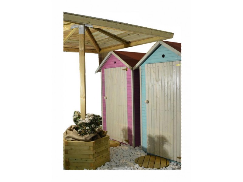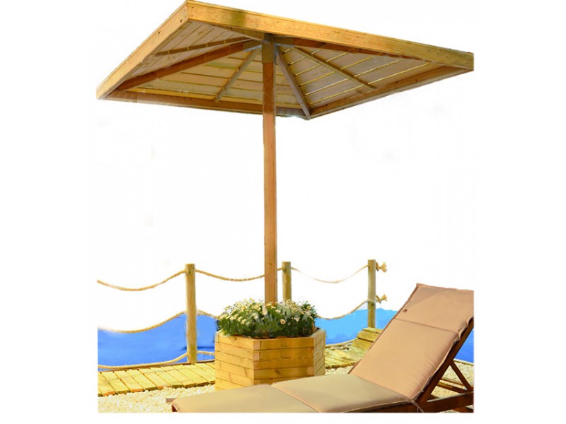 Practical and elegant beach umbrella made of impregnated pine wood for long use and durability.