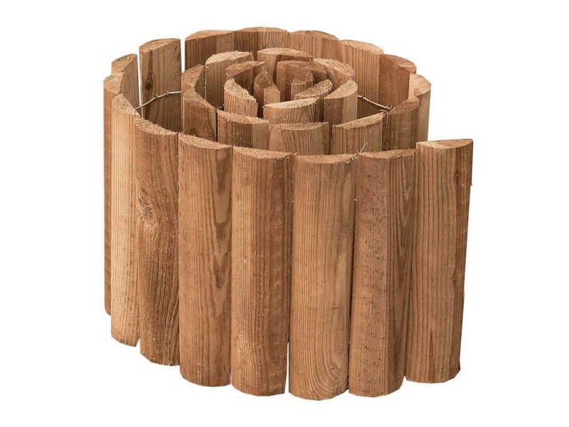 Wooden Rollboarder Half-Wood 150x(H)20cm | Fences and Garden Dividers. The wooden garden rollboarder is a stylish low height dividing fence. It is placed in any areas of the gardens to be demarcated, such as flower beds, corridors and paths and takes any possible shape, whether straight or curved. The woods are connected together with wire which can be cut to the desired length. The wooden rollboarders are made from Scandinavian timber, which comes from organized logging of forests, with sustainability in mind. The rollboarder is offered in the natural shade of wood.