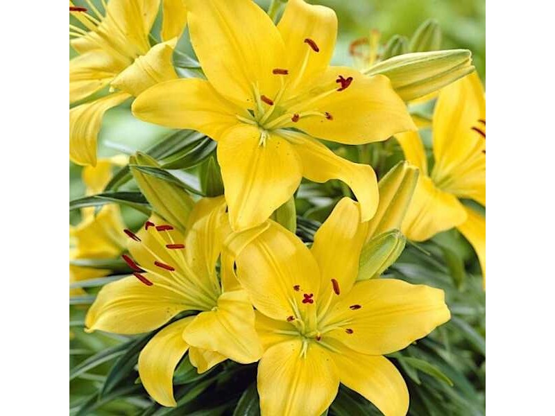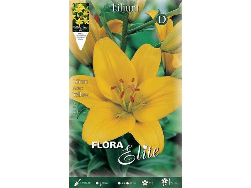 Monochrome bulbs of Asiatic Lily with yellow color of fragrant flower. The Asiatic Lilies are perennial bulbous plants of spring planting whose height can reach 0.60 to 0.90 m with the flower. Lilies bloom in summer, with flowers of different sizes and impressive colors. The Asiatic Lily bulbs can be planted in the garden or in a pot and planter. Planting in pots and planters requires a high quality soil mixture, as well as pumice or other similar material, in the area of the flowerpot bottom, to facilitate drainage, which in the case of bulbous plants should be excellent. The Yellow Asiatic Lily is useful to stake in order to have an attractive appearance throughout the whole flowering period.