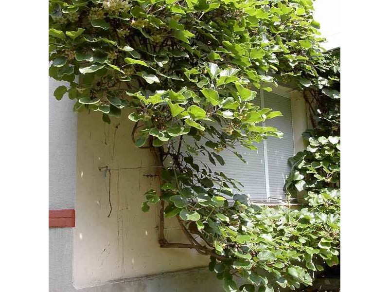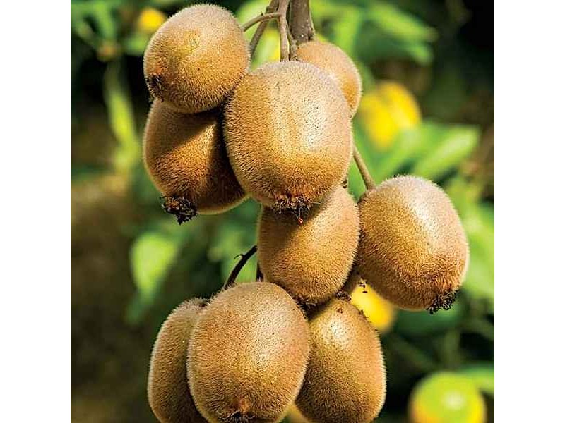 The Fuzzy Kiwifruit (Actinidia deliciosa or Actinidia chinensis var. deliciosa) botanically belongs to the Actinidiaceae family. It is a large-sized perennial, deciduous, fruit-bearing woody climbing shrub, the height of which can reach 5.0 to 9.0 m. The Fuzzy Kiwifruit plant seeks sunny positions and is very resistant to very low temperatures, even when they reach -9 °C (although it can withstand -12 °C but is damaged), as well as to high temperatures. It is grown in medium to heavy soils, with an acidic to neutral reaction (5.1-7.5, optimum: 6.5-7), which drain well and contain high levels of organic matter. Fuzzy Kiwifruit flower from late spring to early summer. They are dioecious plants (in separate individuals the males from the female flowers) and in order to fruit they need 1 male for every 8-9 females. The Fuzzy Kiwifruit is harvested from August to October (depending on the variety or cultivar), when the brown berry fruits ripen. The fruits of the Fuzzy Kiwifruit have nutritional properties but also provide health benefits. They can be eaten fresh and/or added to salads. Note that the plants offered here are grafted, having male and female flowers on the same plant, and therefore can bear fruit even if only one or a few of them are planted. This is sufficient to cover domestic consumption of kiwifruit.