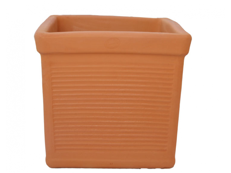 Clay Square Planter TETRAGONI RIGA 45x45x(H)44cm terracotta color is included in the Series of ATTIKA terracotta and ceramic machine pots and Square Planters, manufactured by the leading Greek company in the production of ceramic - pottery products Ceramart. Clay Square Planter TETRAGONI RIGA 45x45x(H)44cm has an excellent form with prominent rims, while it is adorned with simple parallel lines that leave the impression of stripes. It is made of specially processed red colored clay that gives it exceptional stability and durability.