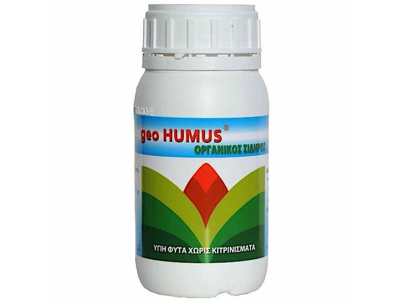 Liquid Organic Iron Geo Humus 200ml. The liquid organic iron Geo Humus product is effective combination of chelated iron EDTA and EDDHA. Indicated for the prevention and active treatment deficiencies iron plant (chlorosis-yellowing). It can be used throughout the cultivation period in acacia leaves (gardenia, hydrangea, camelia etc.).