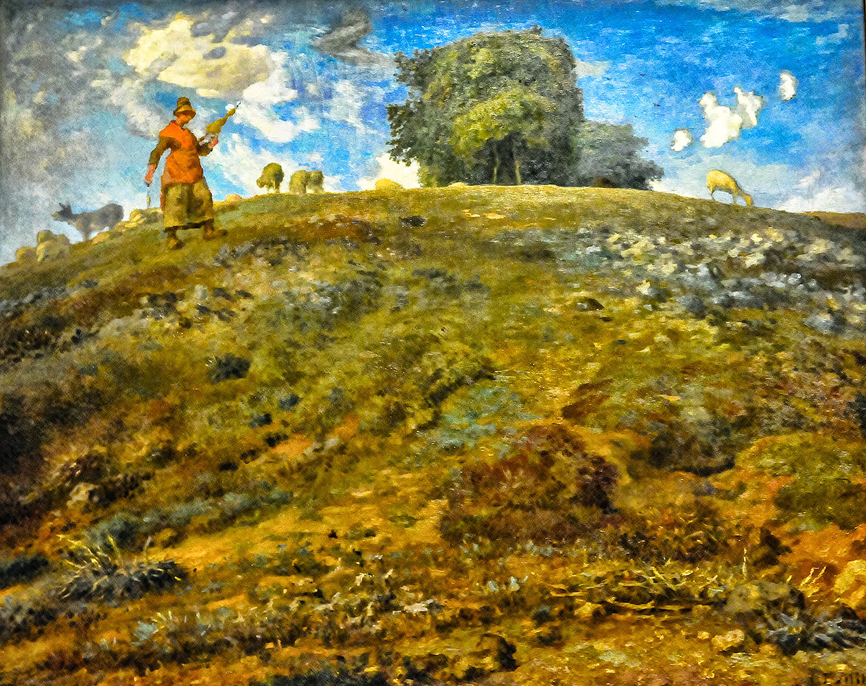 2.1. Breaking new artistic ground as rapporteur of the realism, focused the theme of the narration of rural life, the narrative of the life of French peasants of his time, and not with the eyes of a genre painting but with the look of a pioneer that combine landscape and people in one indissoluble, even organic, coherent lattice. If the products of academicism smelled mold, the paintings of Millet was rising and emit fresh cultivated soil.
