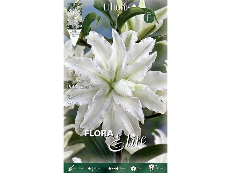 Polar Star Lily: monochrome bulbs of Oriental Lily with white color of fragrant double flower. The Oriental Lilies are perennial bulbous plants of spring planting whose height can reach 0.60 - 0.90 m with the flower. Lilies bloom in summer, with fragrants flowers of different sizes and impressive colors. The Oriental Lily bulbs can be planted in the garden or in a pot and planter - but always in soil that is not alkaline. Planting in pots and planters requires a high quality soil mixture, as well as pumice or other similar material, in the area of the flowerpot bottom, to facilitate drainage, which in the case of bulbous plants should be excellent. The Polar Star Lily is useful to stake in order to have an attractive appearance throughout the whole flowering period.