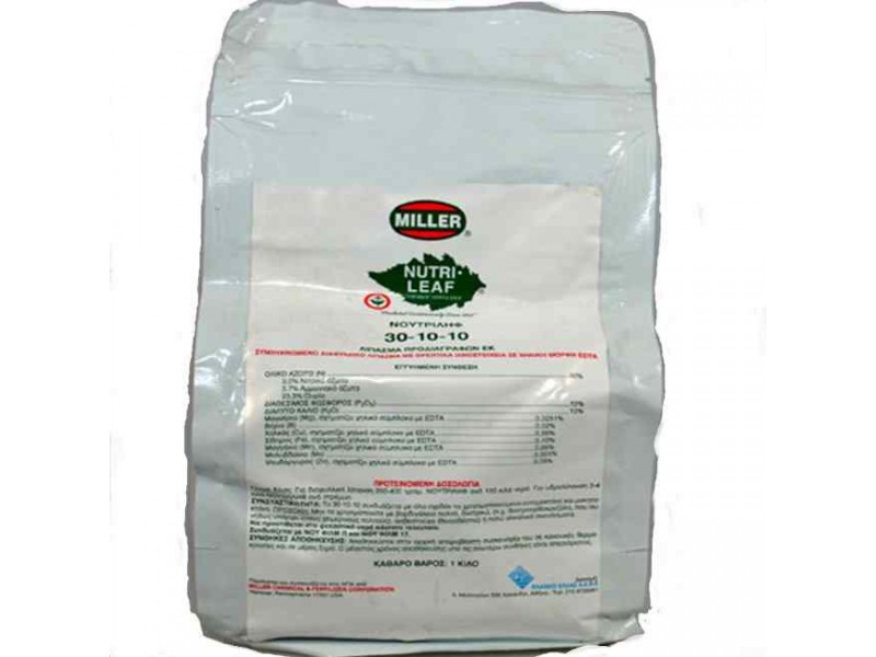 Crystalline Foliar Fertilizer Nutrileaf Miller 11-41-8 1kg. This is another premium quality crystalline fertilizer from the leading American fertilizer company Miller. Nutrileaf 11-41-8 directly provides the plants with the necessary nutrients and highly digestible nitrogen. Its timely use contributes to the rapid growth of strong and durable plants. The fertilizer is applied by hand, with foliar sprays or with fertigation and is combined with almost all plant protection products.
