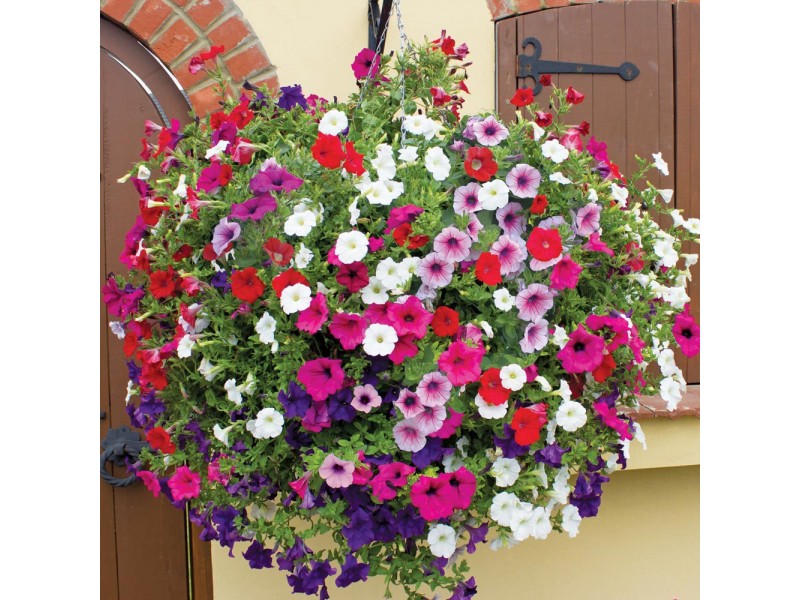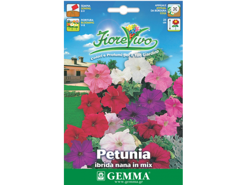 Garden Petunia Mix Seeds 0.2g Packet (Petunia × hybrida 'Nana Compacta'). Annual. Suitable for pots, beds and edging. Seeks positions with full exposure to the sun. Seed spacing (cm): 30. Row spacing (cm): 50. Sowing depth (cm): 0.2. Days to germination: 10. Start of flowering (days): 30. Available in a 0.2 g envelope.