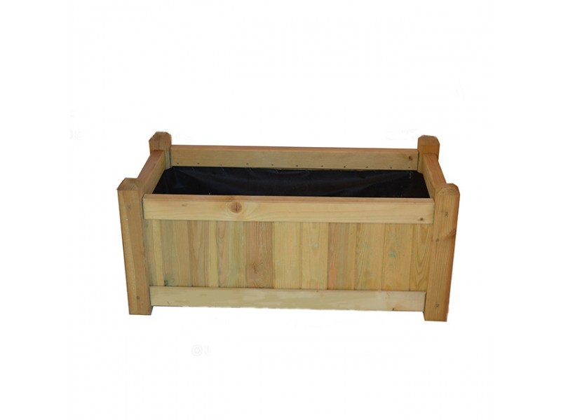Wooden Rectangular Flowerpot GRANADA 45(H) x 50 x 100cm. The wooden planters GRANADA are made by preasure treated timber and are extremely durable. They are suitable for homes and stores. They can be used as pots or window boxes and are offered with internal fabric for direct planting. The fabric retains soil but leaves the plant to breathe and the water runoff.