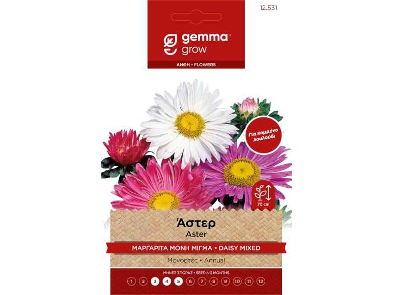 Άστερ Μαργαρίτα Μονή Μίγμα 1g Σπόροι Φάκελος (Callistephus chinensis). Μονοετές φυτό. Κατάλληλο για κομμένο λουλούδι.Επιζητά ηλιόλουστα σημεία και ημισκιά. Ανθίζει καλοκαίρι μέχρι φθινόπωρο σε εντυπωσιακές αποχρώσεις. Απόσταση φυτών (εκ.): 40. Απόσταση γραμμών (εκ.): 50. Βάθος σποράς (εκ.):0,3. Ημέρες φυτρώματος: 10-12. Έναρξη ανθοφορίας (ημέρες): 60. Διατίθεται σε φάκελο των 1 g.