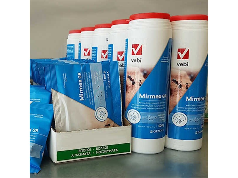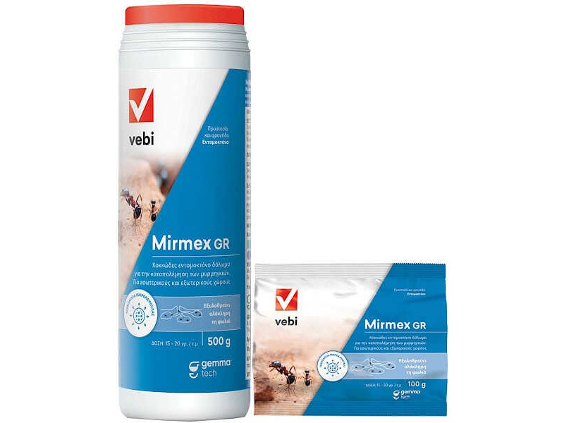 MIRMEX GR 100g Granular Insecticide Bait for Ants - Ant Killer. MIRMEX GR is a microcapsule technology insecticide, which in granular form, is used to combat most species of ants (Tropical ants, Pharaoh ants, Argentine ants, etc.). It is very effective and easy to use. MIRMEX GR acts as a food attractant (sugar) and its insecticidal effect is achieved with the active substance Cypermethrin. The Cypermethrin contained in the bait is consumed by the ant, which is not killed immediately, but is given time to transport it to the nest. When it is also consumed by the other ants, the entire colony is exterminated.