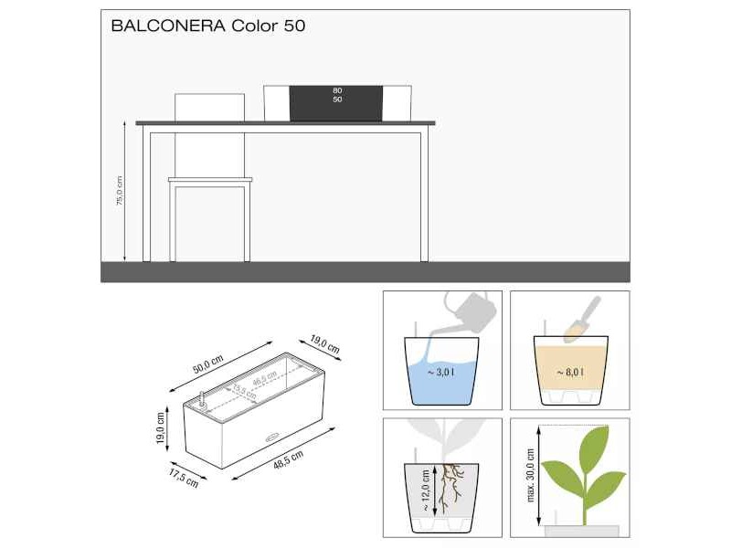 Η σειρά BALCONERA Color συγκροτεί μια συλλογή από συνθετικές Ζαρντινιέρες - κασπώ. Αποτελείται από τα μοντέλα BALCONERA Color 40, 50, 80, και 100, ενώ διατίθεται σε ποικιλία μεγεθών και χρωμάτων. Όλα τα μοντέλα της σειράς κατασκευάζονται από ειδικής σύνθεσης και επεξεργασίας πλαστικό με βάση το πολυπροπυλένιο (PP), και προσθέτοντας νέα εξειδικευμένα υλικά, αξιοποιούν στον βέλτιστο βαθμό σχεδιαστικές δυνατότητες, λειτουργικότητα και αντοχή στην μακρόχρονη χρήση και στις καταπονήσεις. Κάθε ζαρντινιέρα - κασπώ της σειράς, προορίζεται για εσωτερική ή εξωτερική χρήση σε ιδιωτικούς ή επαγγελματικούς χώρους και γραφεία. Αλλά περισσότερες πληροφορίες για τις Ζαρντινιέρες της σειράς BALCONERA Color, ή την συνθετική BALCONERA Color 50 Γκρι Ανοιχτό 50x19x19cm όπως και για τα λοιπά προϊόντα της εταιρείας, θα βρει ο ενδιαφερόμενος στον επίσημο Ελληνικό ιστότοπο της Lechuza.