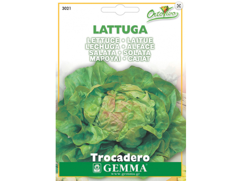 Μαρούλι Σαλάτα Trocadero Σπόροι (Lactuca sativa). Ποικιλία με μεσαία κεφαλή και μεγάλη αντοχή στο ψύχος. Διατίθεται σε φάκελο των 1,5g.